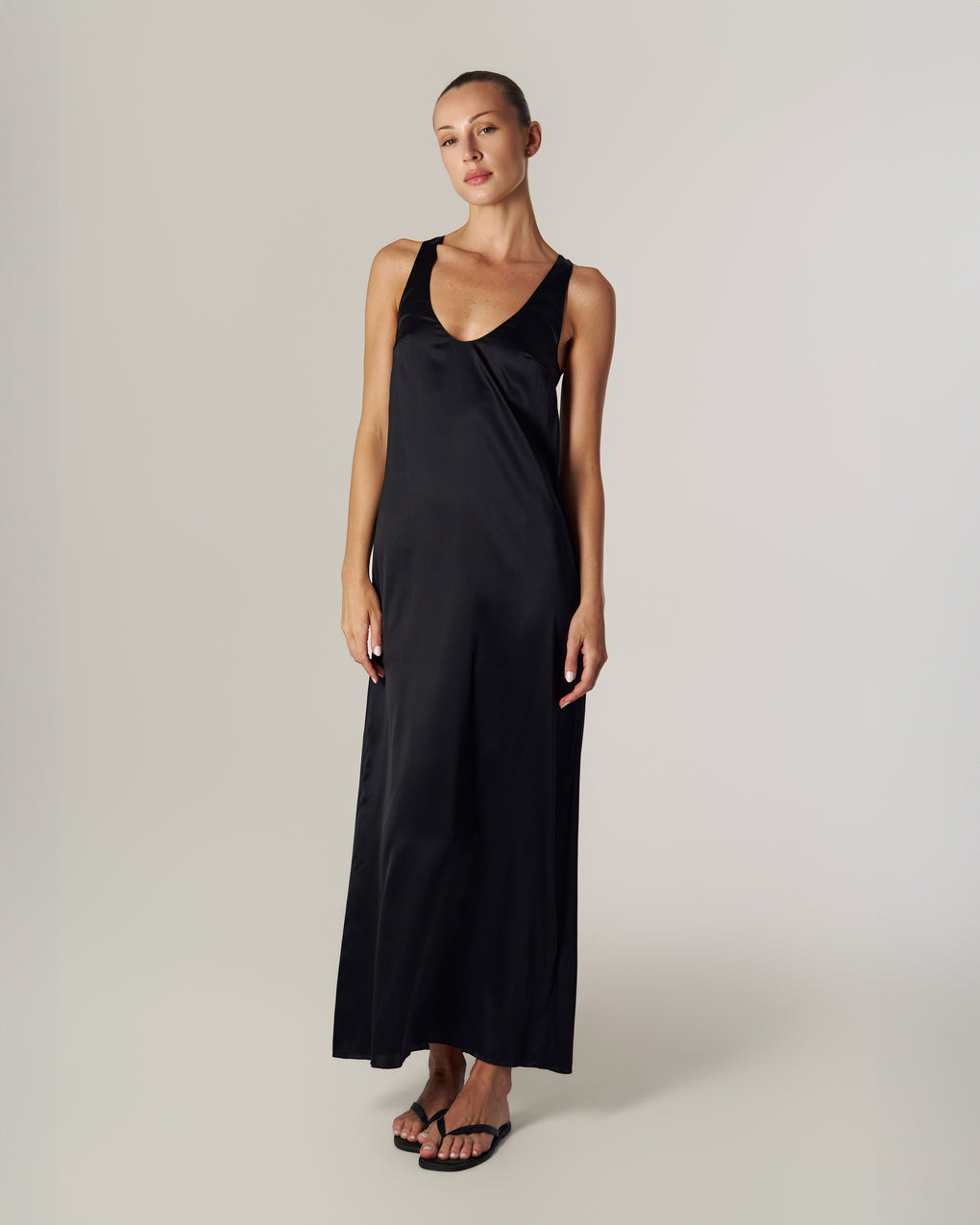 A refined expression of modern minimalism. Crafted in a sleek floor-length silhouette, this black maxi dress elongates the figure with effortless ease. Its clean lines and fluid drape create a quietly striking presence — versatile enough for evening occasions, elevated daytime styling, or sophisticated layering. A timeless wardrobe statement defined by simplicity and elegance.