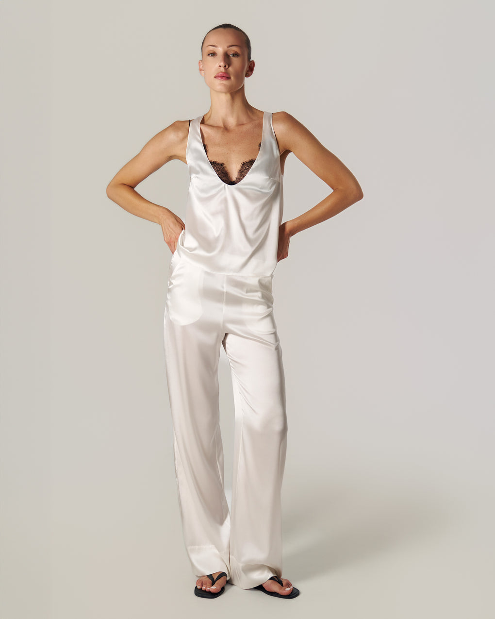 Silk-satin top. 97% silk, 3% elastane. Dry clean.
